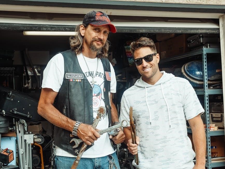 Begin by ensuring the garage door is partially open and secure. Locate the control unit in a dry, accessible area, avoiding direct sunlight; Mount the unit using provided brackets, ensuring it is level. Connect the electrical components carefully, following the wiring diagram in the manual. Secure stops to the bottom slat using bolts to prevent accidental door movement. Do not install the control unit externally unless necessary. Test the system by pressing the remote fob to ensure proper operation. If issues arise, refer to the troubleshooting section. Always follow safety guidelines and consult a professional if unsure.